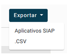 Dentro de las opciones se podrá Exportar a un archivo en formato “CSV” o bien “Exportar para aplicativos SIAP”