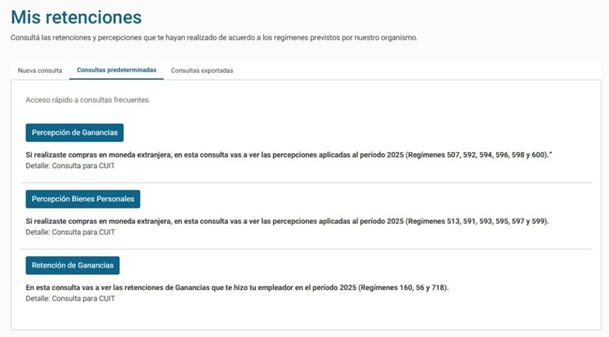 - Rango de fechas desde y hasta de las retenciones y/o percepciones
