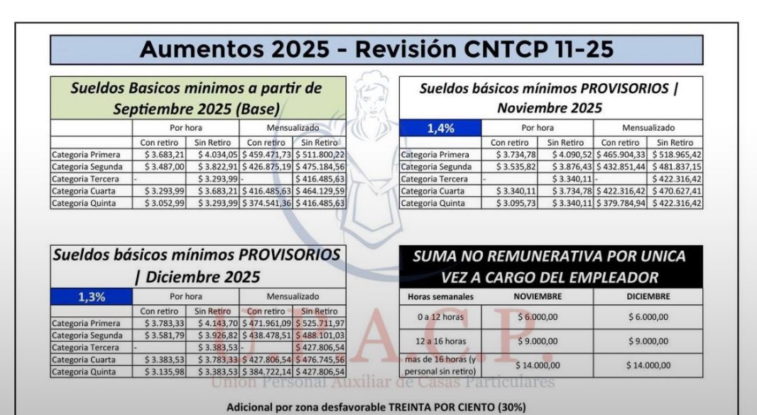 La Comisión Nacional de Trabajo de Casas Particulares cerró el viernes un acuerdo salarial para el sector que se aplica a los meses de noviembre y diciembre de 2025.