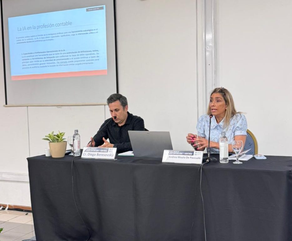 Para finalizar, Cra. Andrea Mayta De Pascuale y Cr. Diego Beresovsky disertaron sobre Inteligencia Artificial en la profesión contable, un análisis actualizado sobre los desafíos éticos y las competencias necesarias frente a la transformación digital.