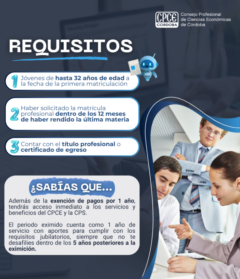 Si sos un profesional de hasta 32 años inclusive y estás dentro de los 12 meses de haber rendido tu última materia, el CPCE y la CPS te eximen por un año del pago del derecho por ejercicio profesional y del valor del aporte jubilatorio.