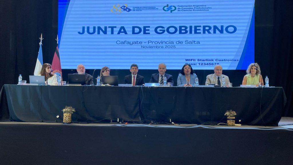 La Junta de Gobierno de la Federación Argentina de Consejos Profesionales de Ciencias Económicas (FACPCE) delibera este viernes en Cafayate (Salta). Por el CPCE Córdoba participan la presidente Teresita Bersano y Elio Bustos.